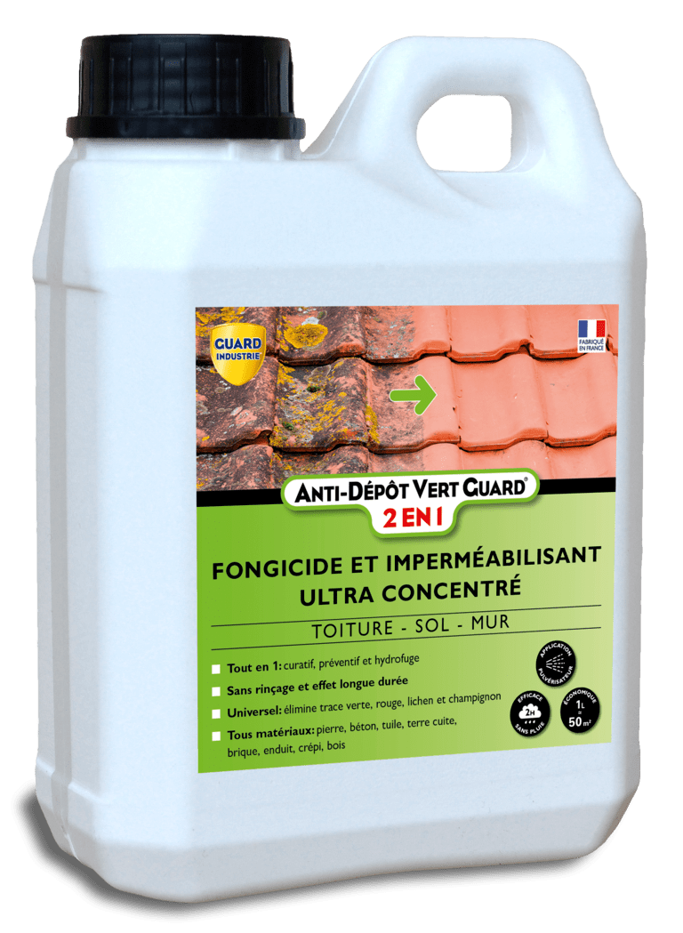 Descoperă Anti-Dépôt Vert Guard® 2 în 1 – tratament împotriva depunerilor verzi, mușchi și lichen, cu efect fongicid și impermeabilizant.